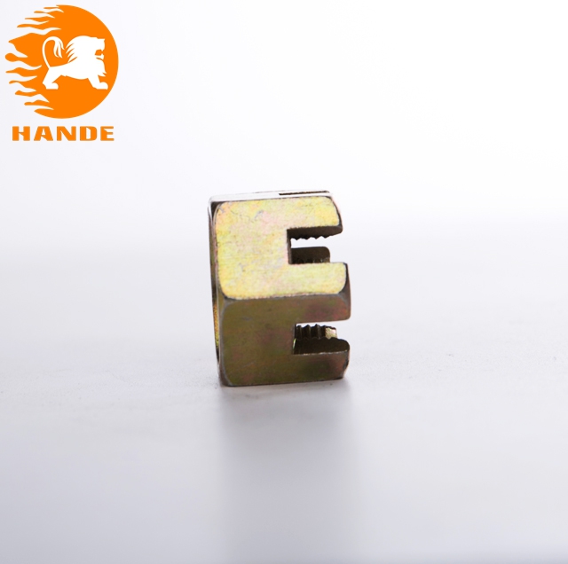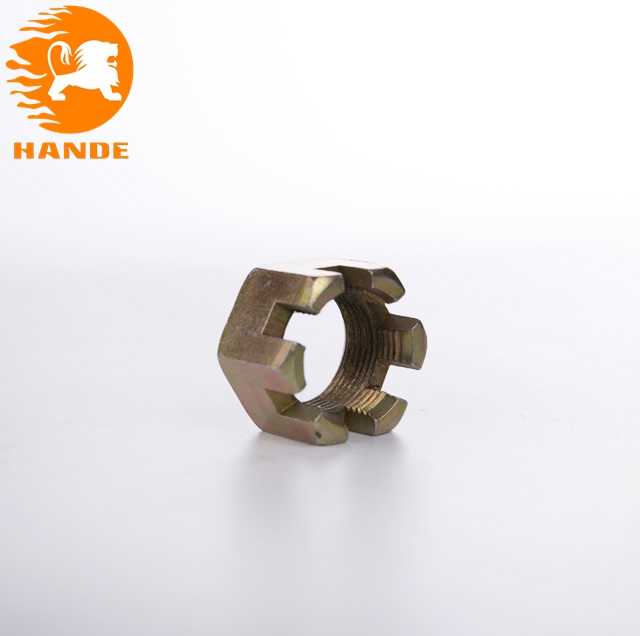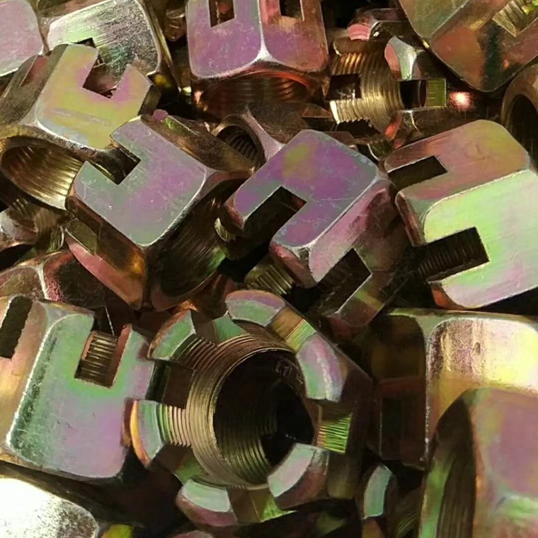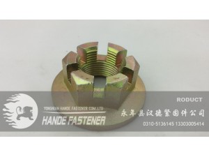 開(kāi)槽螺母的作用:就是通過(guò)緊固穿過(guò)前后輪輪軸螺桿固定車(chē)輛前后輪軸,使車(chē)架和輪胎固定在一起,為了防止螺母松脫,必須用開(kāi)口銷(xiāo)通過(guò)開(kāi)槽螺母的槽進(jìn)行固定,而開(kāi)口銷(xiāo)要固定住開(kāi)槽螺母就必須從輪軸螺桿中間穿過(guò),通常輪軸螺桿兩頭都需要鉆孔,孔的直徑大小和開(kāi)槽螺母的槽寬和槽深決定了選用什么規(guī)格的開(kāi)口銷(xiāo),當(dāng)選用 的輪軸螺桿和開(kāi)口銷(xiāo)和開(kāi)槽螺母都比較匹配的時(shí)候,螺母就通過(guò)輪軸螺桿固定住前 輪和車(chē)架,開(kāi)口銷(xiāo)通過(guò)輪軸螺桿的孔緊固件住了開(kāi)槽螺母,使開(kāi)槽螺母不產(chǎn)生松脫, 使車(chē)輛在運(yùn)動(dòng)的時(shí)候也不松脫.